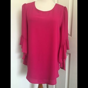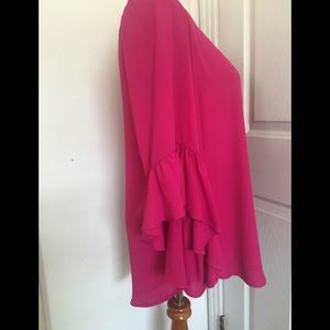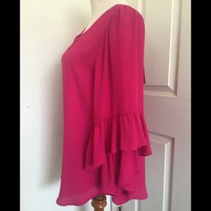 Elegant fuchsia top with ruffle sleeves. Perfect for a chic look.