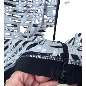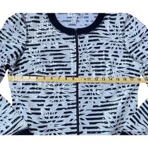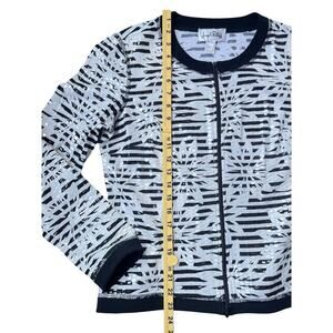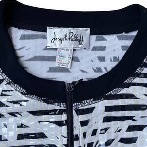 Joseph Ribkoff Full Zip Vinyl Shimmer Striped Floral Jacket Black White Size 12