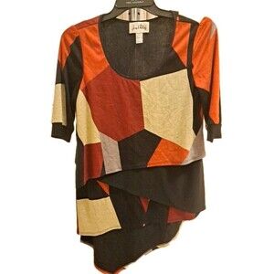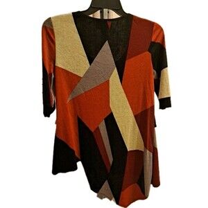 Joseph Ribkoff Geometric Knit Tunic Top Asymmetrical Artsy Retro