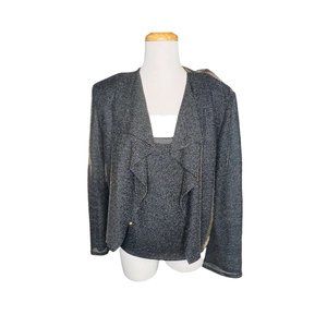 Elegant silver & gold metallic blazer and camisole by Joseph Ribkoff. Features a draped front design. Perfect for formal occasions.