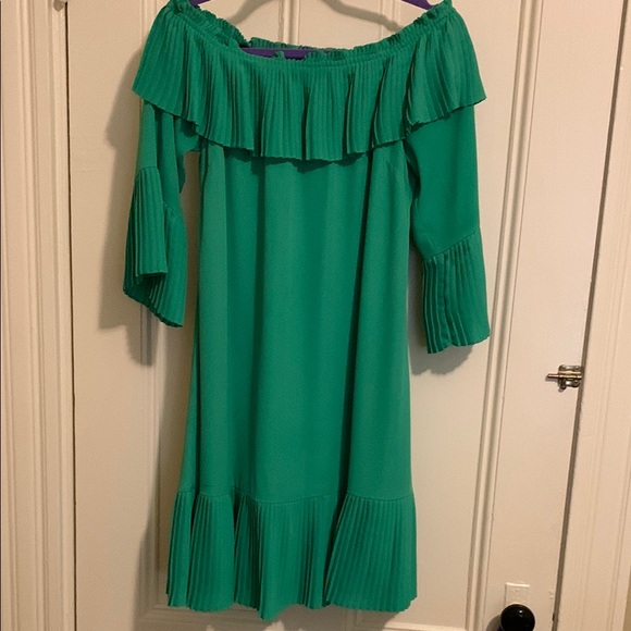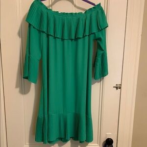 Joseph Ribkoff Green Ruffled Off-Shoulder dress