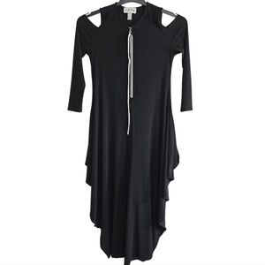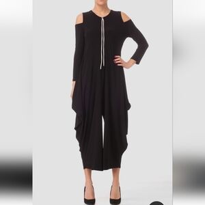 Joseph Ribkoff Harem Drape Cold Shoulder Zip Black Jumpsuit Stretchy Knit 2