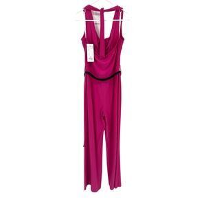 Joseph Ribkoff Hot Pink Halter Neck Tie Back Wide Leg Jumpsuit Black Tie Size 12 NEW! Party Retro