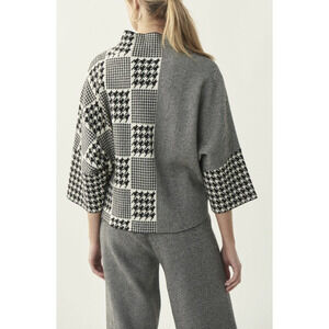 Houndstooth Herringbone Patchwork Knit Sweater in Black & White