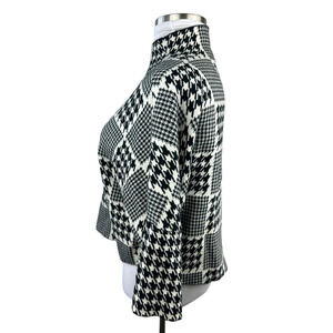 Joseph Ribkoff Houndstooth Herringbone Patchwork Knit Sweater Oversized Medium