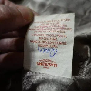 Soft, flexible material (fabric unknown), cold water wash.