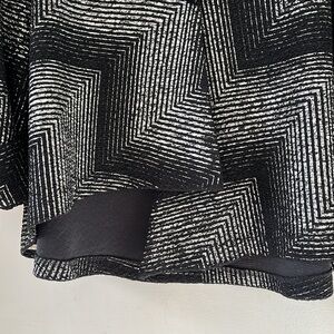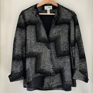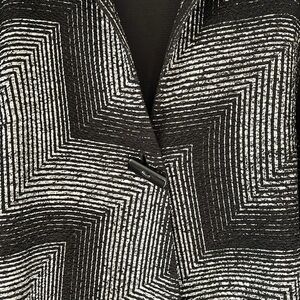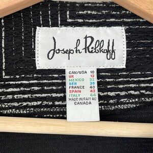 Joseph Ribkoff black and white geometric asymmetrical lightweight jacket. In great condition. Care tag is missing. Slightly stretchy material.