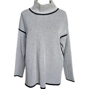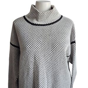 Joseph Ribkoff Jacquard Funnel Neck Top Black White Large