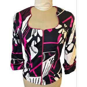 Joseph Ribkoff Multicolor Geometric Full Zip Jacket/Top Sz. 8 Lightweight Packab
