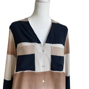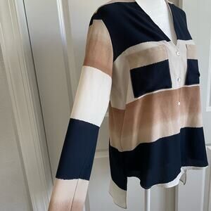 Joseph Ribkoff Navy Beige Off White Blouse Top Button Down Shirt Size 6
