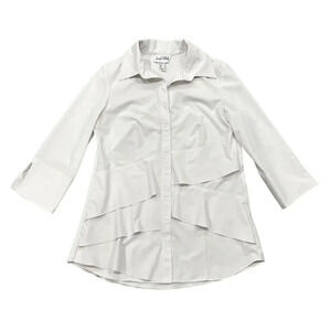 Joseph Ribkoff Off White Asymmetric Ruffle Tunic Blouse 10