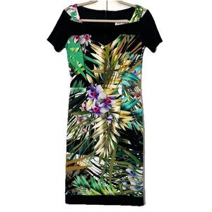 Joseph Ribkoff Pencil Dress Size 6 Floral Short Sleeve Tropical Artsy Event Gues