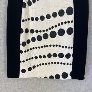 Joseph Ribkoff polka dot dress, black and white cocktail dress, sleeveless cowl neck bodycon, retro mod print dress size 4, Ribkoff party sheath dress, stretchy graphic panel dress