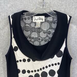 Chic and timeless Joseph Ribkoff dress! 🖤🤍 Featuring bold black & white polka dot panels, a flattering cowl neckline, and sleeveless silhouette. Perfect for cocktail parties, date nights, or any special occasion.