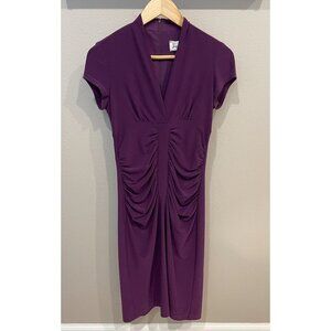 Joseph Ribkoff Purple Ruched Sheath Dress Sz 4 Short Sleeves Stretch Dressy