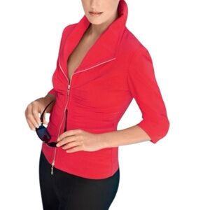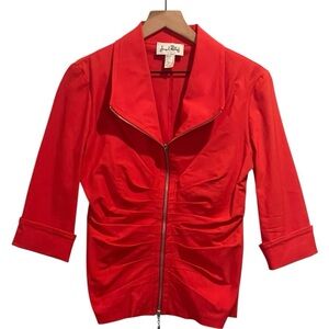 Joseph Ribkoff Red Full Zip-Up Blazer, 3/4 Cuff Sleeve, Ruching, Stretchy, Sz 10
