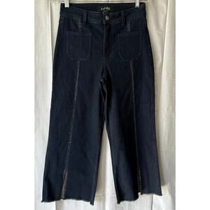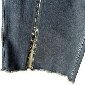 Joseph Ribkoff Rhinestone Embellished Raw Hem Culotte Jeans Blue Cropped 6 Wide