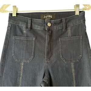 Elevate your denim collection with these chic Joseph Ribkoff culotte jeans! Featuring a wide leg and cropped silhouette, these jeans are perfect for adding a touch of modern elegance to any outfit. The raw hem adds a trendy, edgy vibe, while the rhinestone embellishments provide a subtle sparkle.
