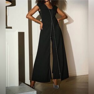 Joseph Ribkoff - Rhinestone Trim Split Panel Jumpsuit