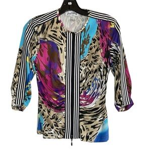 Joseph Ribkoff Size 2 Stretch Jacket Zips Light Weight Animal and abstract print