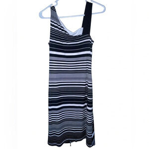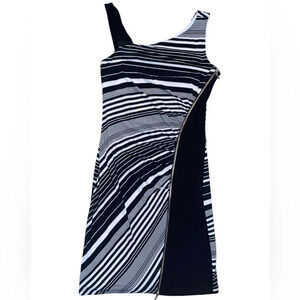 Joseph Ribkoff Striped Dress Asymmetrical Straps Black White Side Zip Size 6