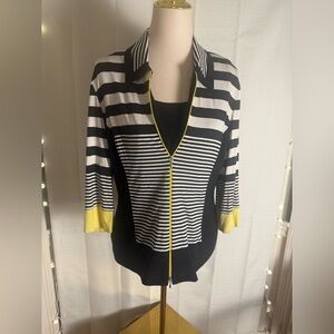 Joseph Ribkoff Striped Zip-Up Jacket Black White Yellow Size 14