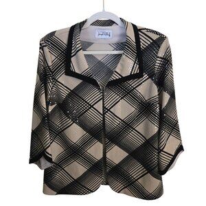 Joseph Ribkoff Stunning Tan Black Plaid Subtle Sequin Jacket 3/4 Sleeve Size L