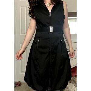 Joseph Ribkoff Sz 12 Black Full Zip Belted Bubble Dress Black Tech Fabric Pocket