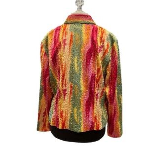Joseph Ribkoff Textured Zip Front Multicolored Watercolor Print Jacket Blazer 16