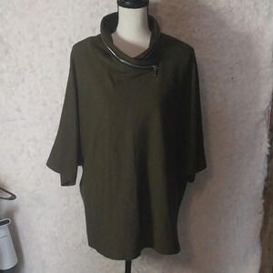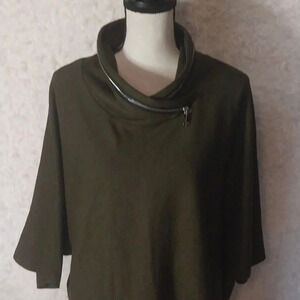 Joseph Ribkoff Top 8 Green Cowl Zip Dolman 3/4 Sleeve Sweater Stretch Sweatshirt