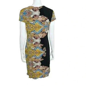Joseph Ribkoff Vintage Paisley Print Stretch Dress Short Sleeve Size 14