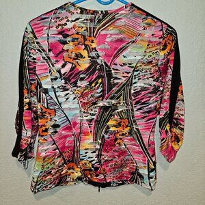 Joseph Ribkoff Woman Size 10 Stretch Jacket Zips Light Weight Art Floral Colorf