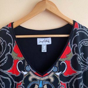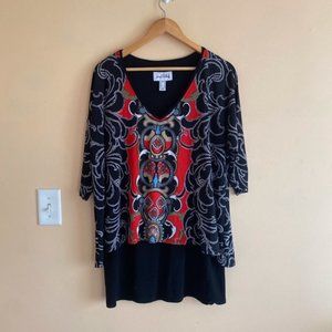 Joseph Ribkoff Womans Size 12 V Neck Layered Jersey Knit 3/4 Sleeve Tunic Artsy