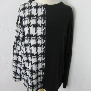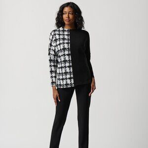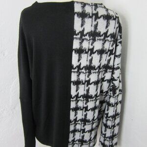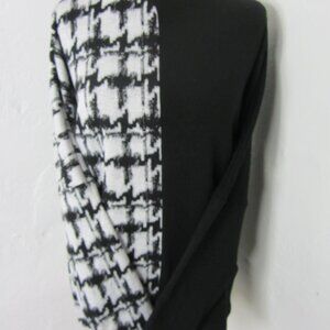 Joseph Ribkoff Women's 14 Black Houndstooth/Solid Long-Sleeve Knit Top NWT