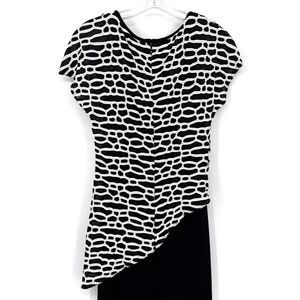 Joseph Ribkoff Womens 4 Black White Asymmetric Overlay Top Dress Stretch Scoop neck