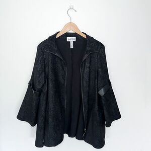 Joseph Ribkoff Women’s Bell Sleeve Black Textured Snakeskin Zip Over Jacket