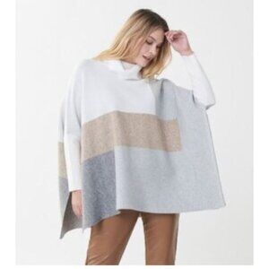 Good preloved condition Joseph Ribkoff Womens Colorblock White Gray Knit Cowl Neck Poncho Sweater XS