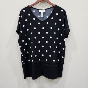 Joseph Ribkoff Womens Polka Dot Tunic Top Sz 12 Black V Neck Embellished Stretch