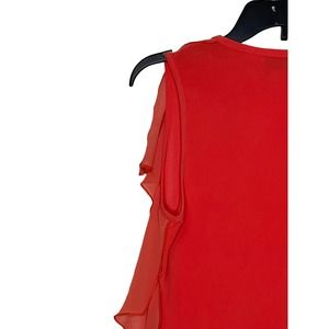 Joseph Ribkoff Women's Vest Tie Front Sleeveless Tiered Ruffled Sheer Orange 6