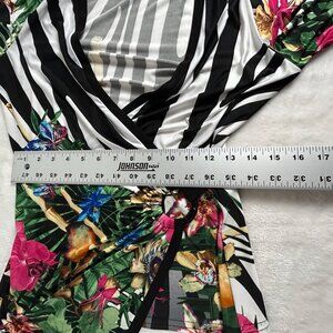 Joseph Ribkoff Womens Wrap Style Floral & Zebra Print 3/4 Sleeve Top Size 8