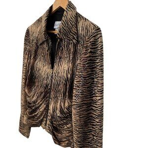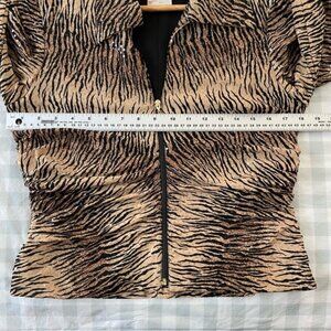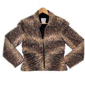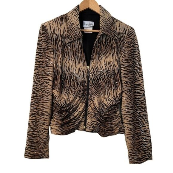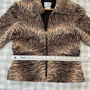 Joseph Ribkoff fitted blazer zip up animal prints sequins embellished medium
