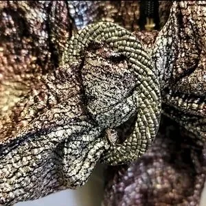 Full zip with unique metal buckle for tie (pull-through)