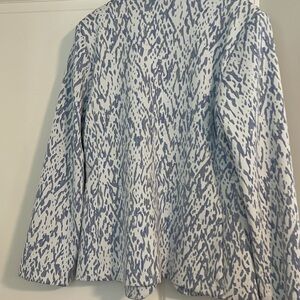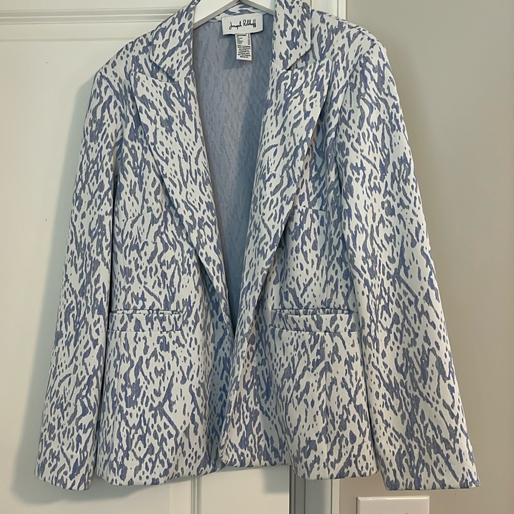 Denim blue and white animal print blazer. 2 front pockets,one button closure