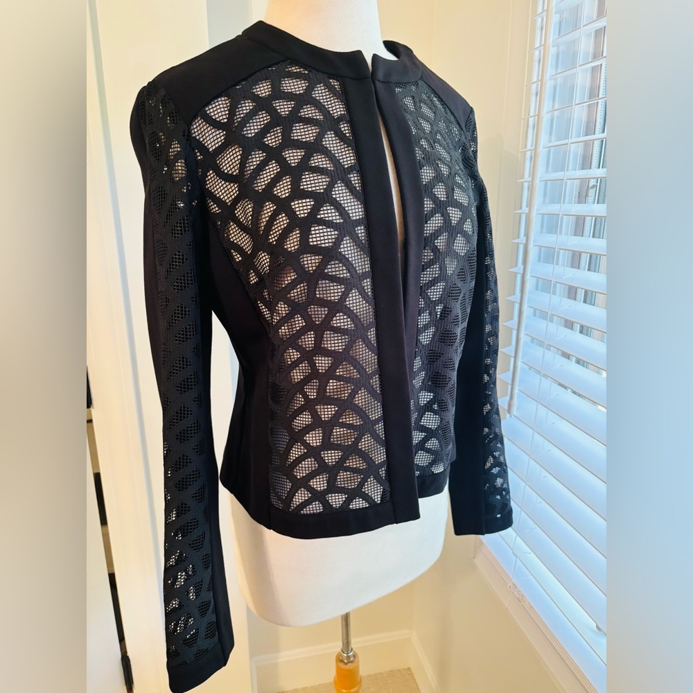 Excellent condition. Ponte stretch with lace-like detail. Designer runs small.
