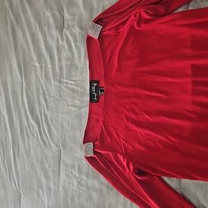 joseph ribkoff red house with diamond accents and opening in sleeves. Perfect for Valentines Day!