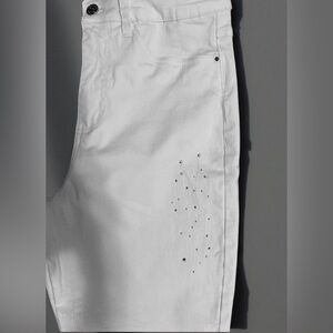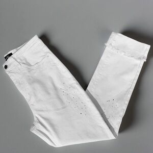 Joseph Ribkoff sz 8 cuffed Women's white Jeans w/rhinestone embellishments NWOT