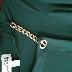 Hunter green stretchy top with a gold chain accent. 3/4 sleeves and goes into a point in the front. Never worn! NWOT