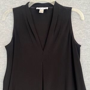 Joseph Ribkoff Black Pleated Sleeveless Top Womens 8 V Neck Career Office Blouse