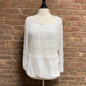 Joseph Ribkoff Ivory Silk Lace Overlay Blouse Size Large NEW