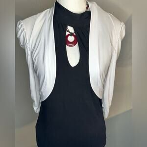 Joseph Ribkoff white Open Front 3/4 Sleeve with Ruching Shrug Size 4